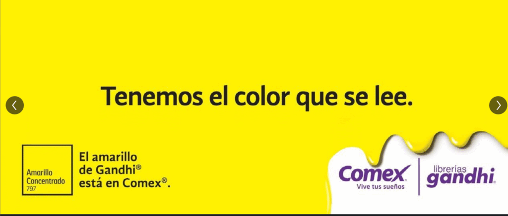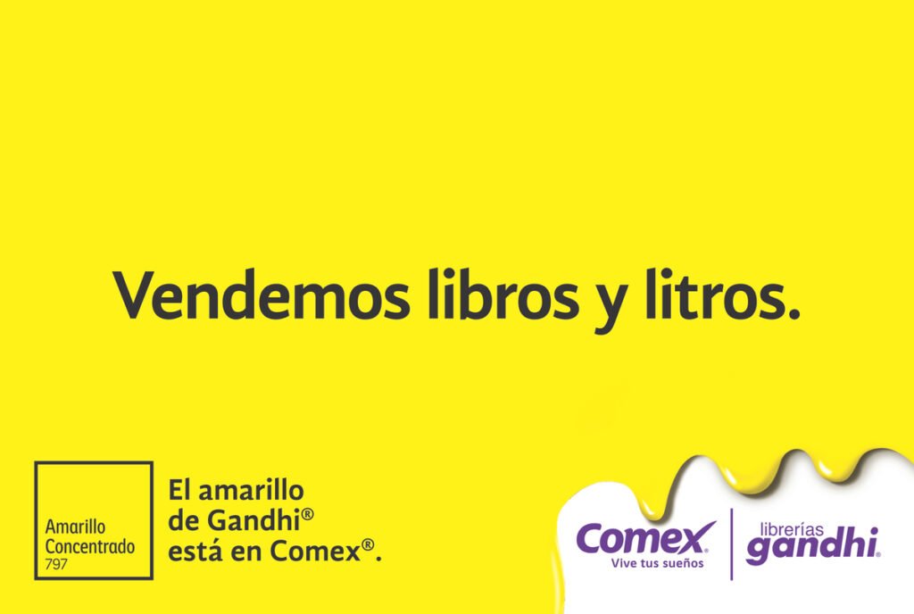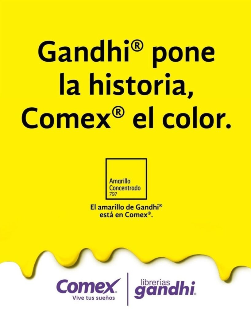 Hace 50 años, La familia Gandhi instalo su primera librería en México y le llamo. librerías Gandhi logró convertir la lectura en un hábito, con la creatividad de Pepe Montalvo con campañas que ya forman parte del hábito de los mexicanos, hoy toca el caso de establecer el Cross Marketing con la marca líder Comex que ha establecido el liderazgo absoluto en la venta de Pinturas de todos tipos para los Mexicanos s a lo largo de 70 años, transformando hogares y ciudades con innovación en pinturas y recubrimientos que invitan a vivir los sueños en color.